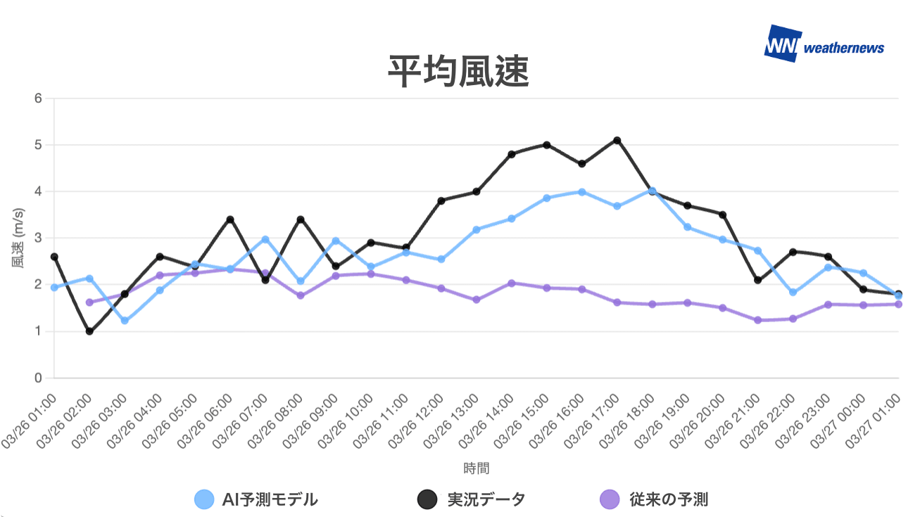 そして、風の実況データを見るだけでなく、このデータをAIに学習させることでAI予測モデルを作ることが可能になりました。