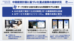 2024年6月からの累計で、AI活用により13,000時間/月の業務時間を削減しております。今期後半でさらに進み、16,000時間/月の削減を実現させる予定です。