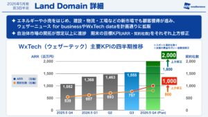 続いてLand Domainですが、こちらは期初のタイミングで「このWxTech(ウェザーテック)シリーズがキーである、具体的にはウェザーニュース for businessなどの新しいサービスがキーである」というお話をさせていただきました。