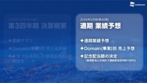 ここまで第3四半期の決算概要とDomain別の売上、およびAIの取組み等をご説明させていただきましたが、最後は通期業績予想でございます。