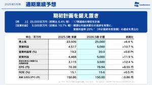 こちらは期初計画を据え置きという形になっております。売上高に関しては若干、このままいくとショートする可能性が高いと思っておりますが、営業利益に関してはこれより上振れるだろうと考えております。