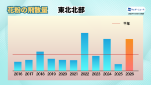 〜東北北部では過去10年で最多に匹敵か 秋田県では前年比6倍超の予想〜