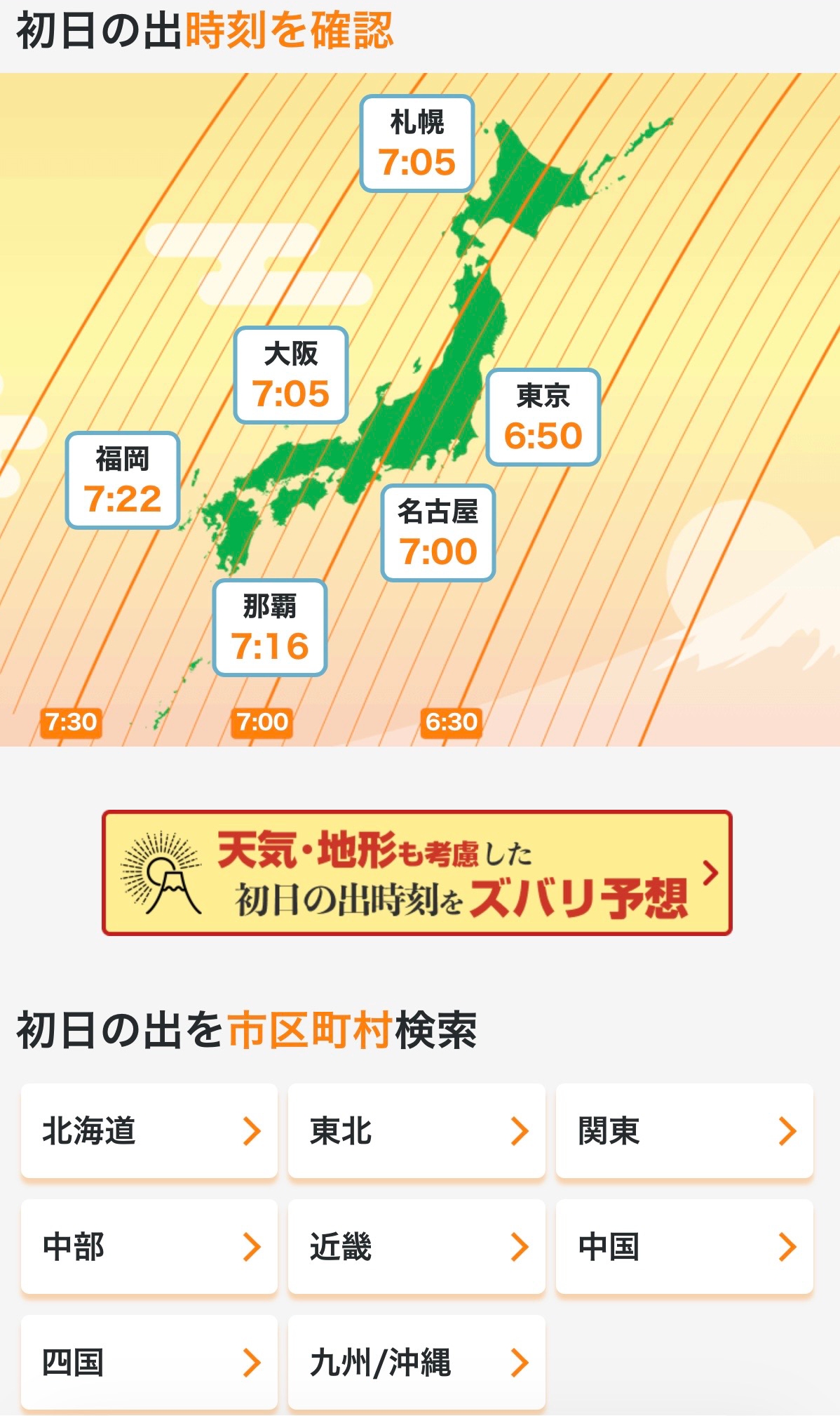 初日の出の見える時刻は何時何分?雲や地形効果を加味した『初日の出時刻ズバリ予想』を提供