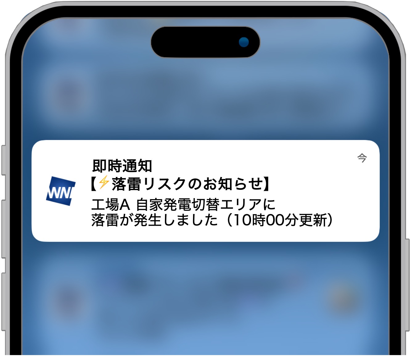 また、設定した監視エリアに連動したスマートフォンのプッシュ通知機能も備えています。雷雲の接近を段階的にお知らせし、通知画面にはあらかじめカスタマイズした「作業中止」や「避難指示」などエリアの名称が表示されるため、受け取ったその場で次のアクションが明確になります。作業や体制判断の迅速化にお役立てください。