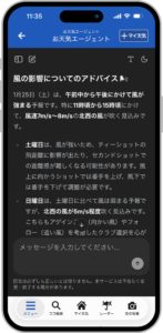 ウェザーニュースの詳細かつ豊富な気象・防災情報と最新の生成AIの要約力、推論力とを組み合わせることで、「対話」をベースとした新しい天気予報の体験を実現。天気予報をより身近な生活に結びついた形で提供します。