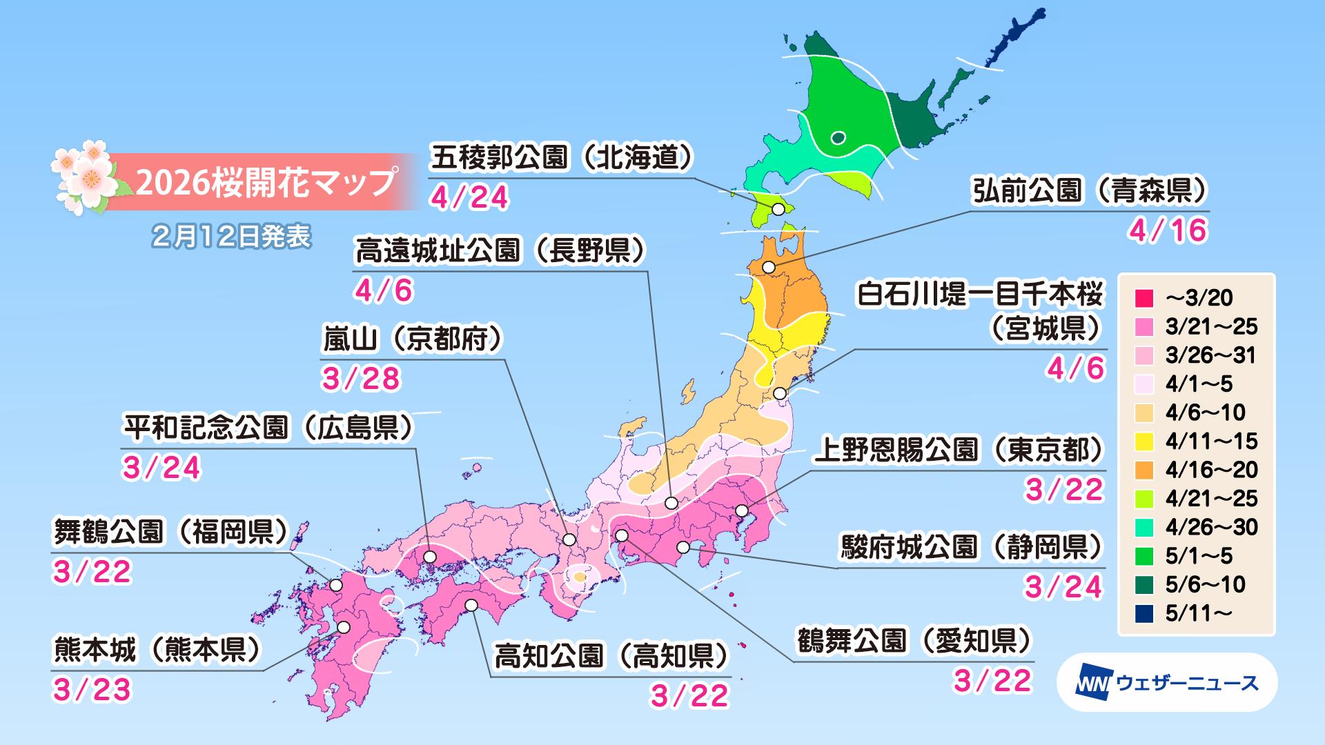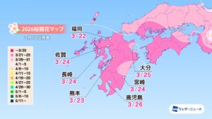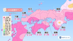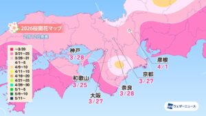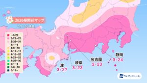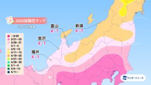 モバイル/インターネット >株式会社ウェザーニューズ(本社:千葉市美浜区、代表取締役社長:石橋 知博)は、桜の季節に向けて「第三回桜開花予想」を発表しました。2026年の桜の開花は、西日本と東日本では平年並かやや早く、北日本では平年並〜非常に早くなるとみています。