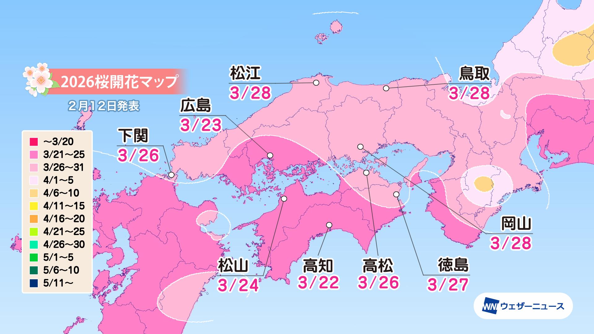 2026年の「第三回桜開花予想」を発表 開花・満開予想日を公開