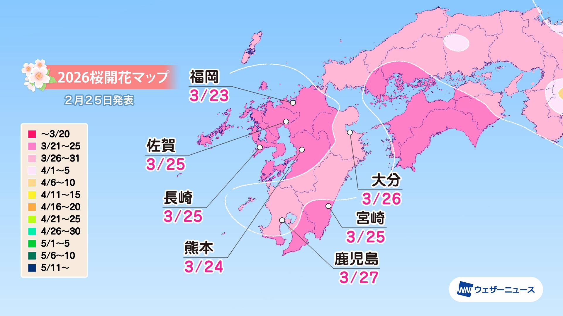 鹿児島 | 3/27 | 4/7 | 3/26 | 3/24 | 4/5 | 4/7 |