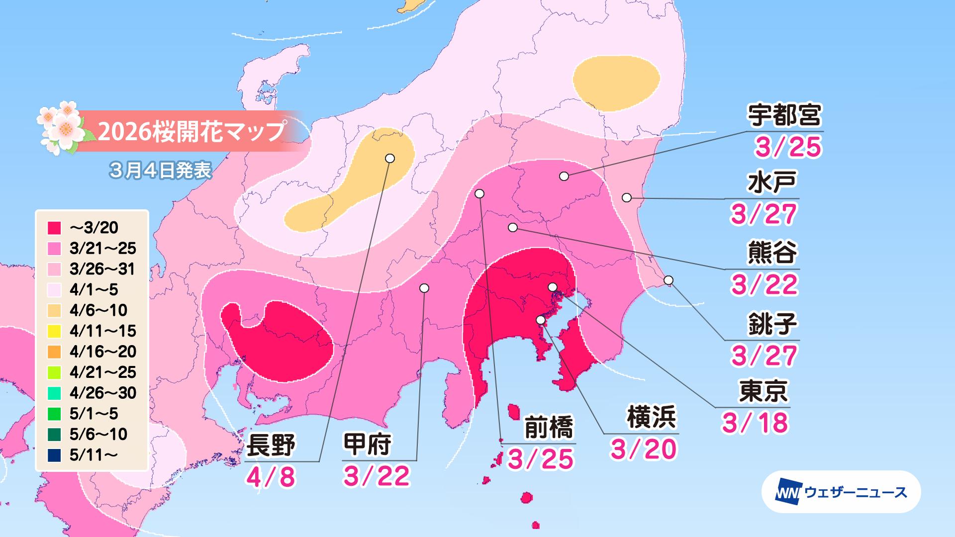 【関東甲信】 東京が開花一番乗り 3月18日予想