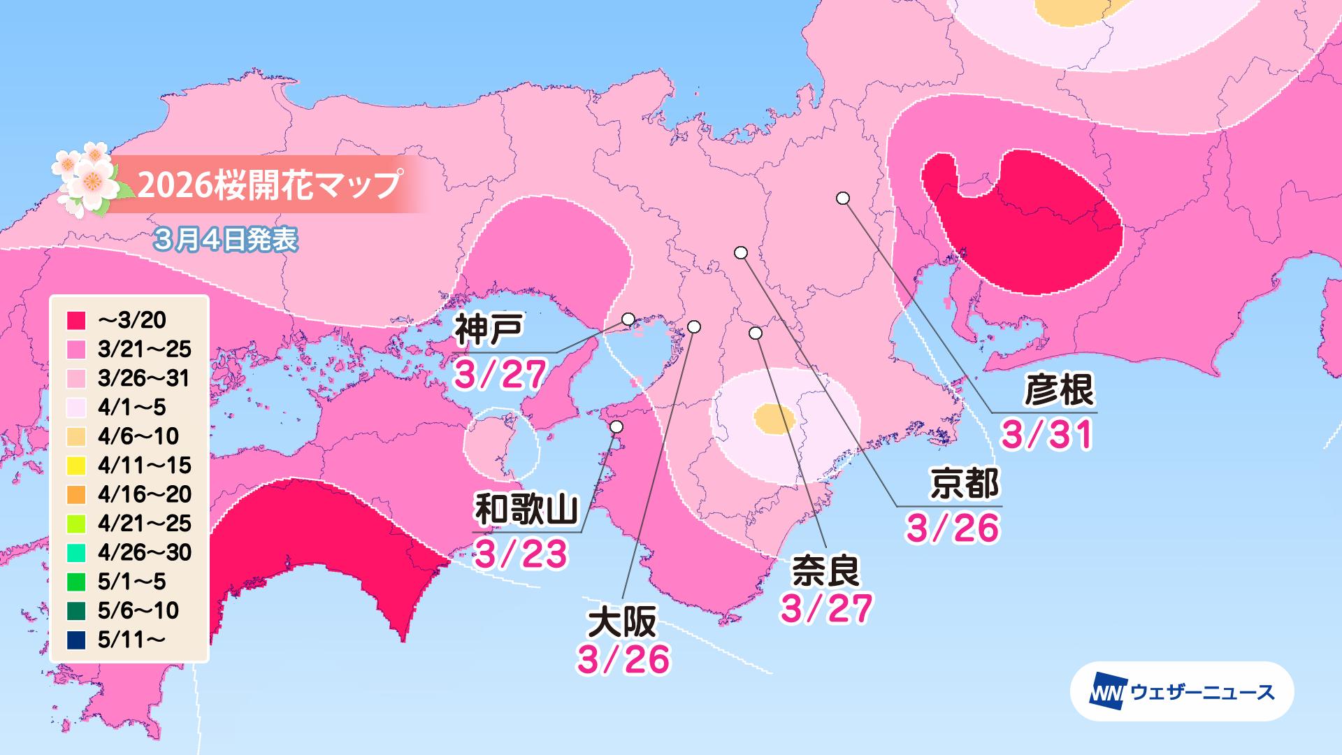 【近畿】 3月23日に和歌山から開花スタート 平年並の予想
