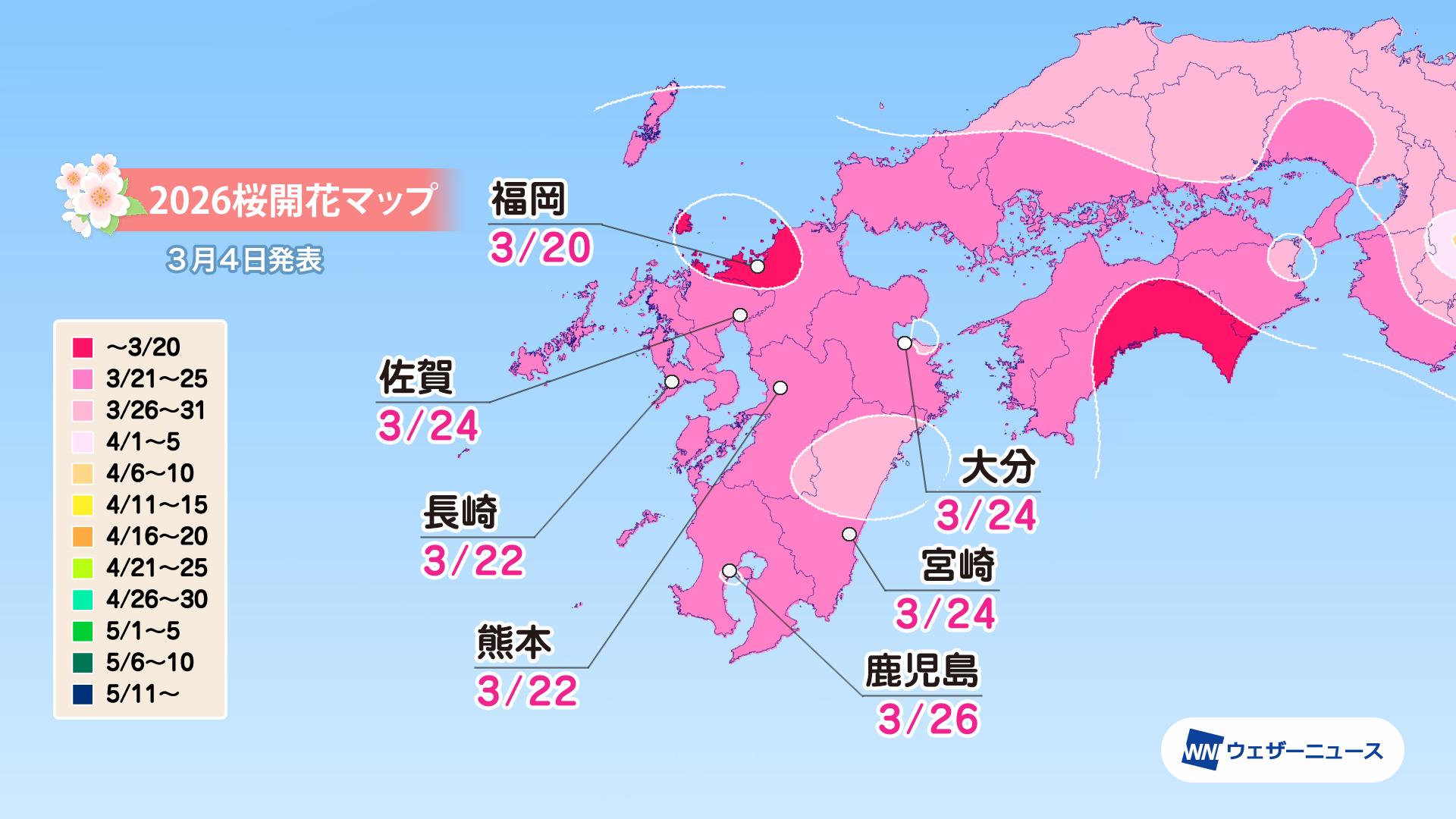 【九州】 3月20日に福岡から開花スタート 平年並の予想