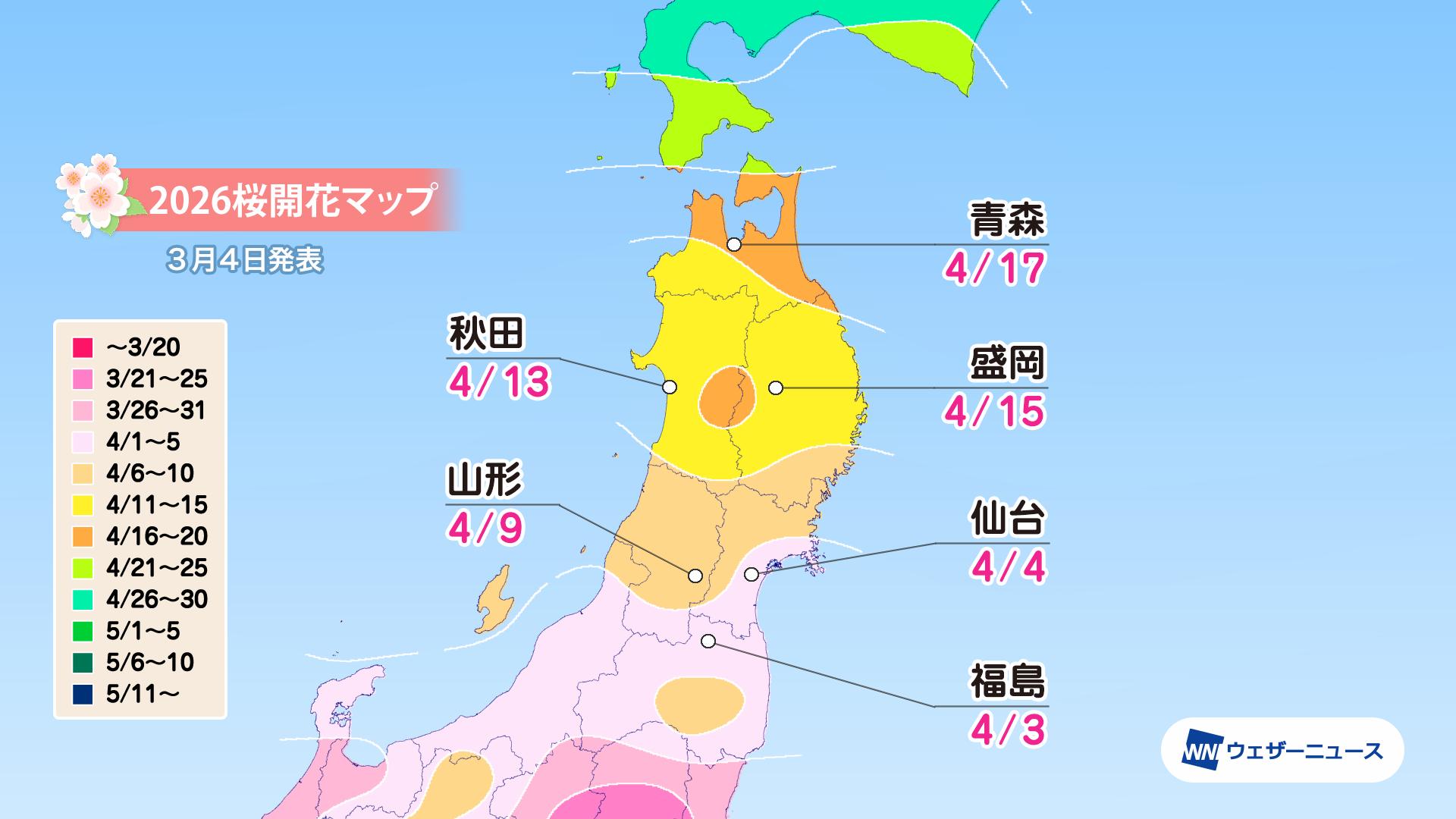 【東北】 4月3日に福島から開花スタート 開花・満開ともに平年より早まる予想