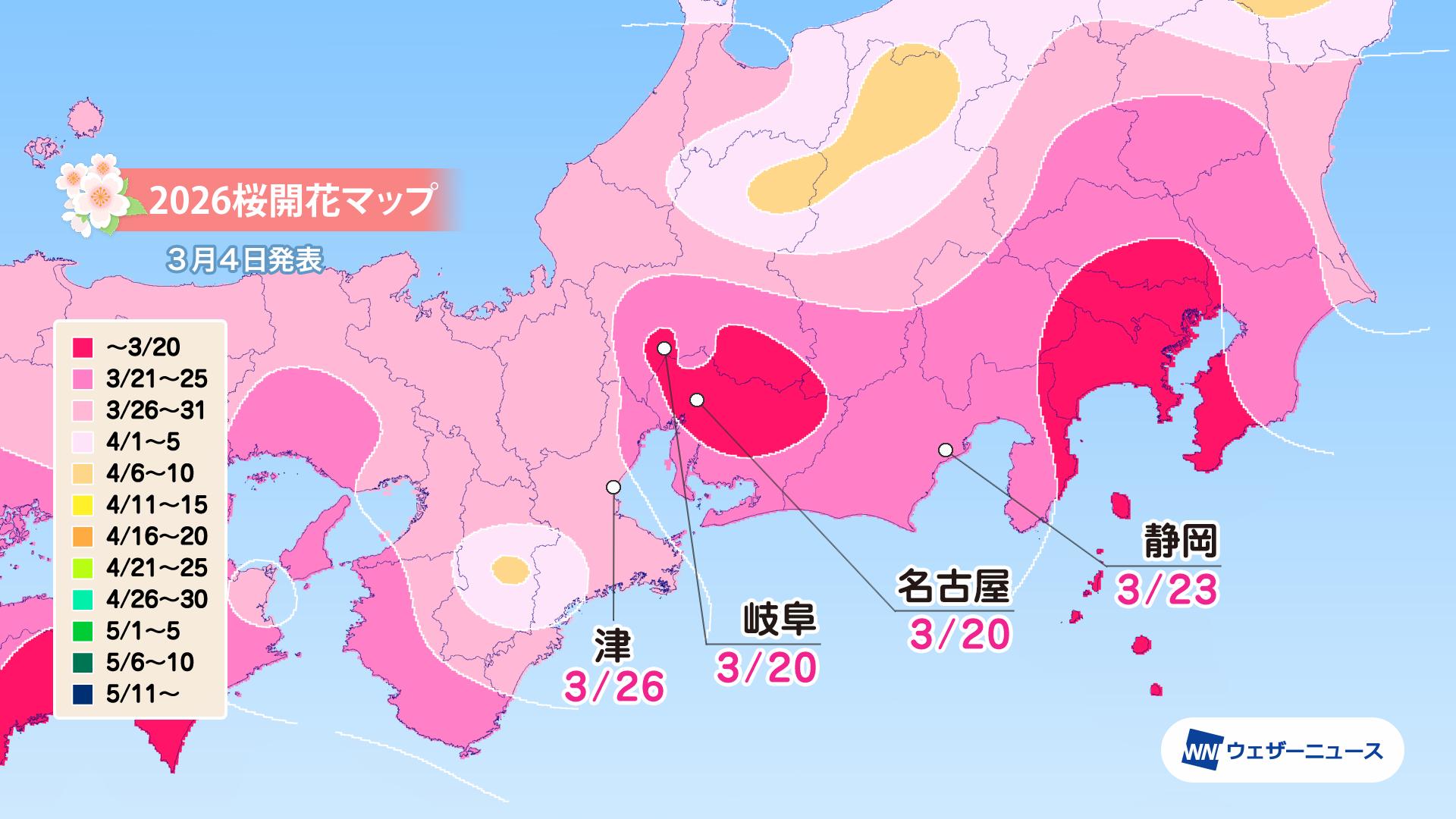 【東海】 3月20日に名古屋・岐阜で開花 平年並〜早い予想