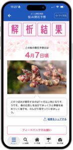 昨年サービスを開始した本機能は、AIがつぼみの写真から「開花日」を判定する日本初(※3)の試みとして、多くの反響をいただきました。今年はユーザーの皆さんの要望に応え、新たに「満開日」の予測に対応したことで、お花見のベストタイミングをより正確に把握し、計画を立てることが可能になります。