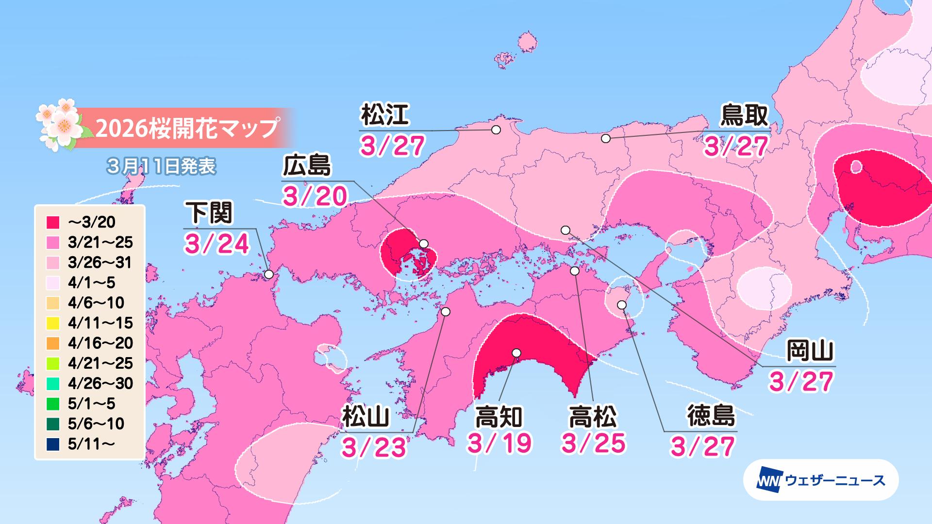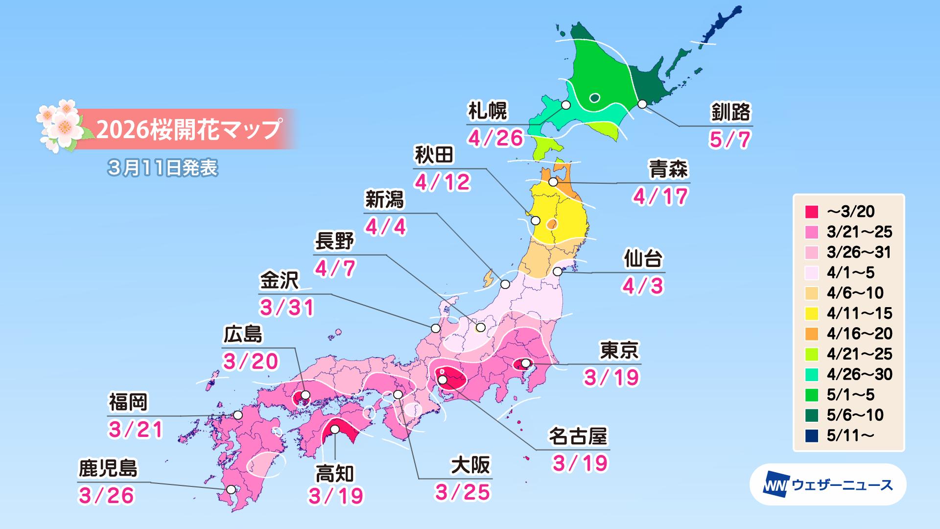 <3月19日に東京や名古屋、岐阜、高知で開花スタート>
