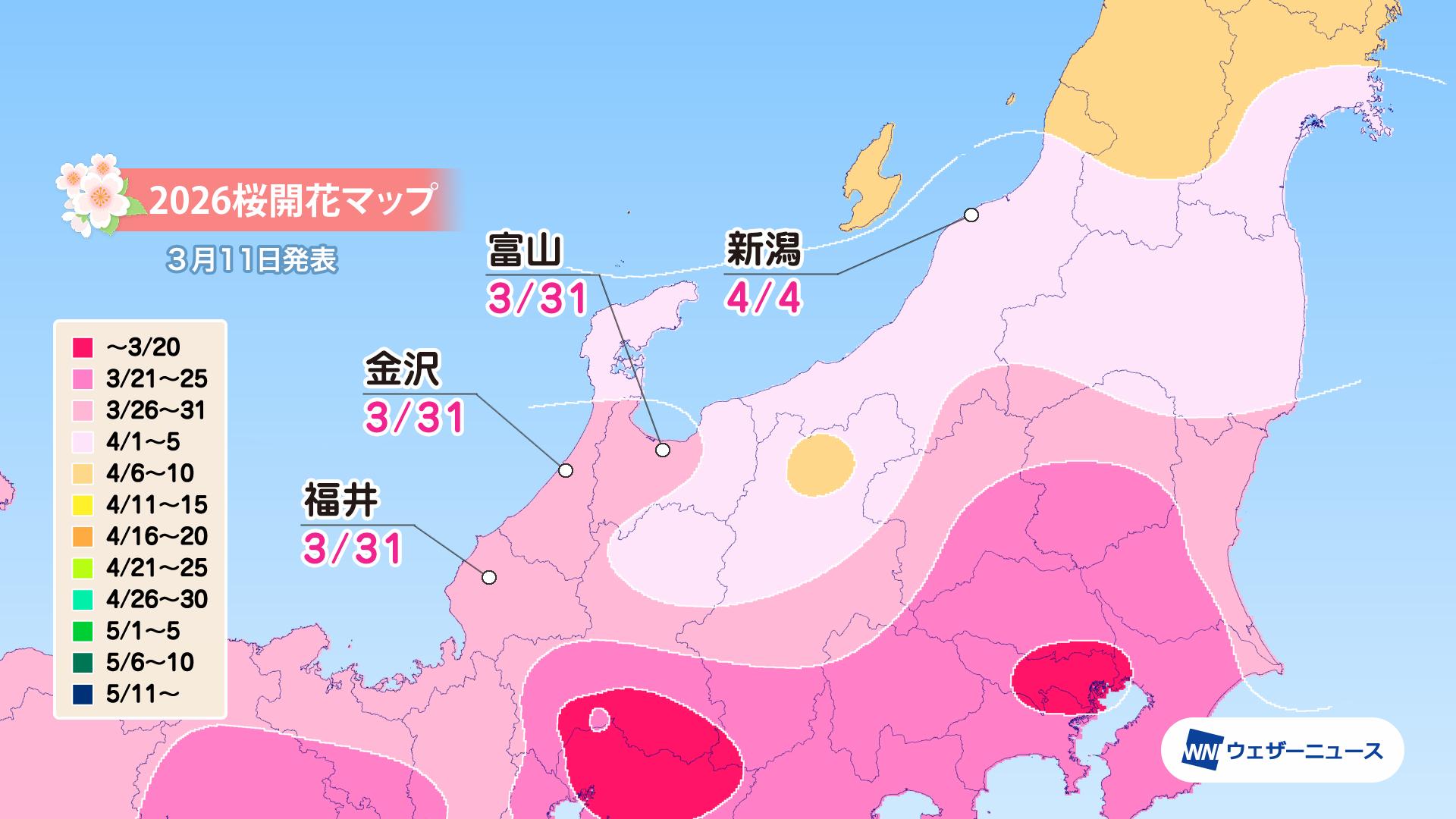 関東甲信 | 水戸 | 3/27 | 4/3 | 3/30 | 3/27 | 4/6 | 4/8 |
