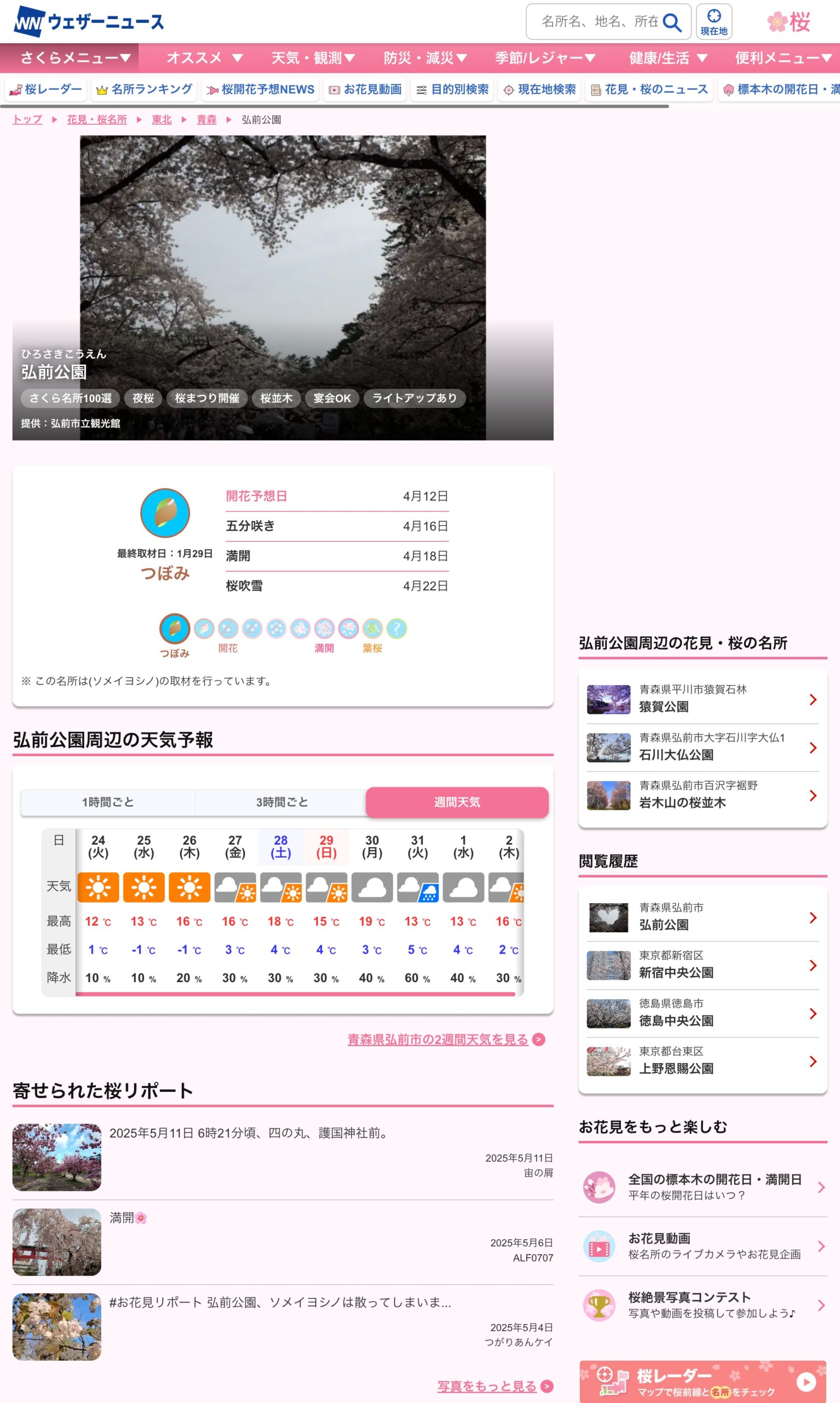 ウェザーニュース「さくら開花情報」でお花見スポット検索