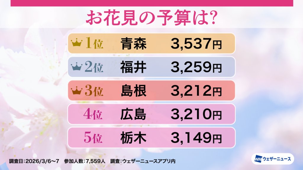 〜お花見予算は平均2,730円、3年連続でコロナ前超え 青森県が4年ぶり首位奪還〜