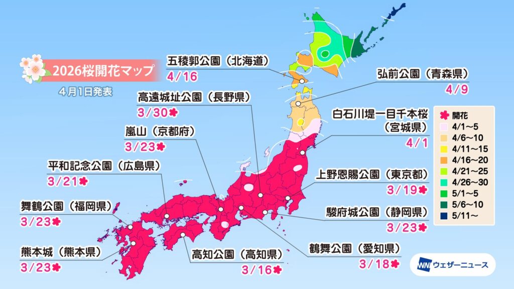 ウェザーニューズ、2026年の「第九回桜開花予想」を発表