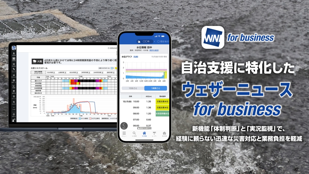 自治体支援に特化した「ウェザーニュース for business」の提供を開始