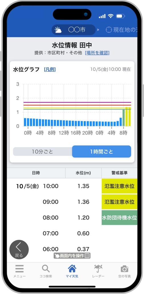 河川水位の状況が確認可能