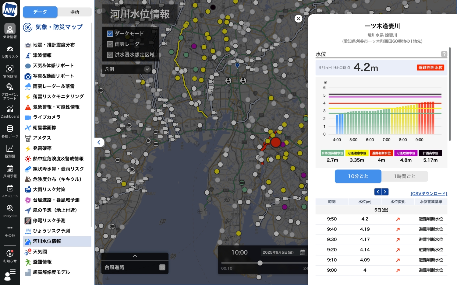 危険度が高まっている地点を即座に把握できる「実況監視」