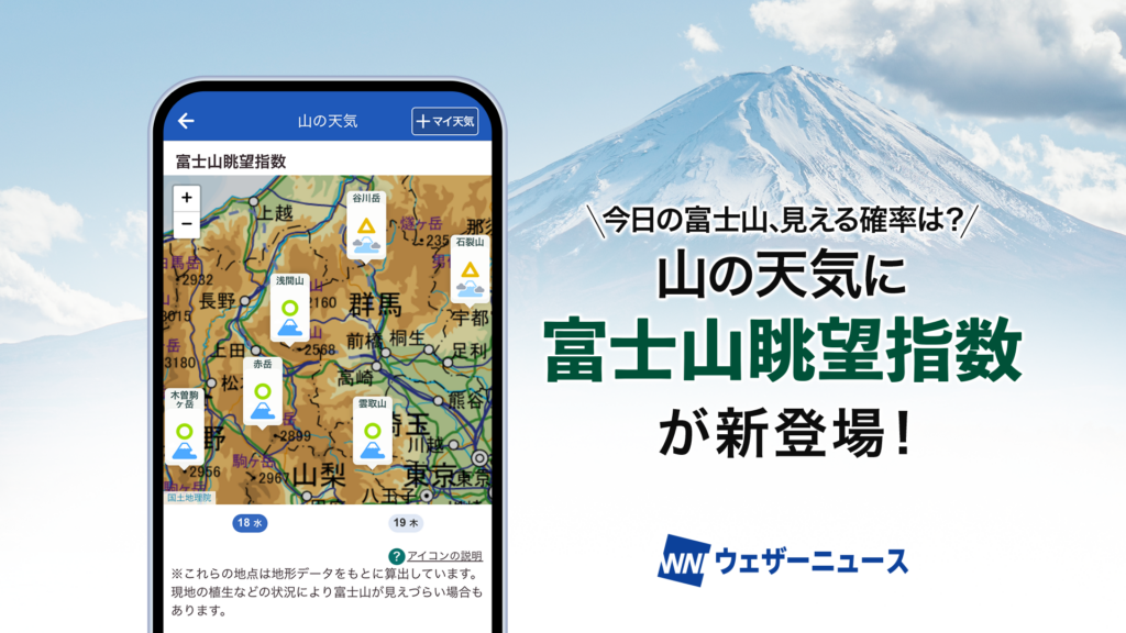 多くの登山者にとって、山頂からの眺望は登山の醍醐味の一つです。ウェザーニュースの「山の天気」ではこれまで、山頂の「霧」の有無を予報することで、登山の安全判断の指標として活用していただくとともに、眺望の参考にしていただいてきました。今回、登山者の方々に山頂からの眺望をより楽しんでいただくことを目的に「富士山が見えるか」に特化した予報を新たに開発し、提供を開始しました。
